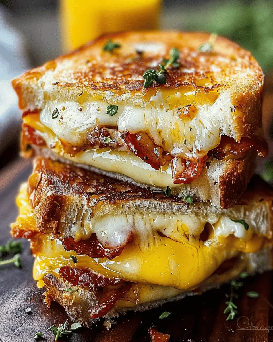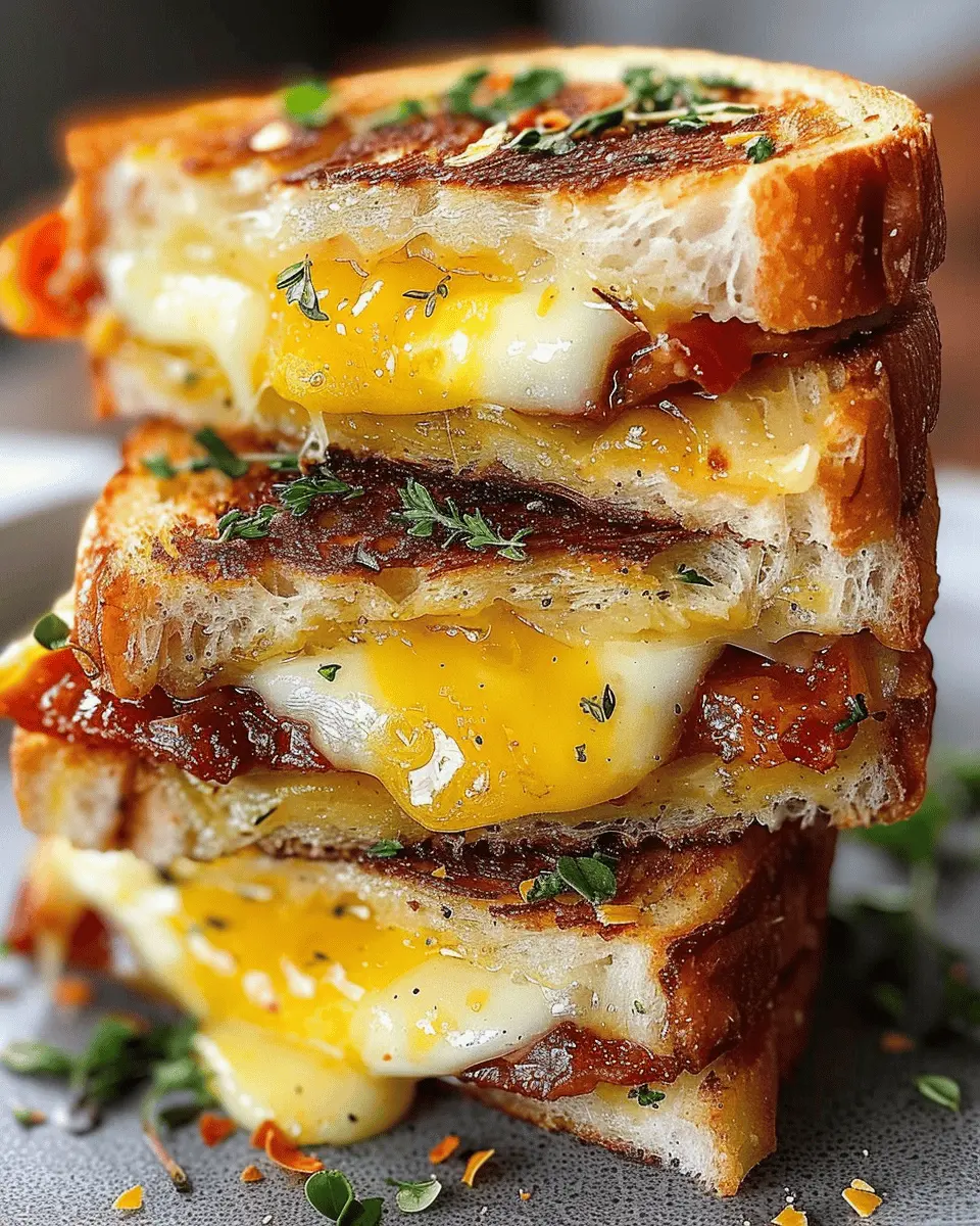 PrintBreakfast Grilled Cheese: Indulgent Turkey Bacon and Chicken Ham Delight