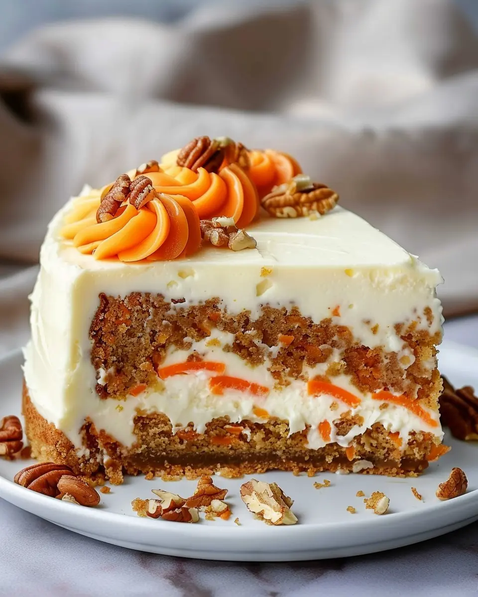 In a world overflowing with dessert options, the carrot cake cheesecake truly stands out. Combining the deep, spiced flavor of traditional carrot cake with the creamy richness of cheesecake, this dessert gives your taste buds a delightful surprise. Imagine biting into a luscious, smooth slice adorned with velvety frosting atop a crunchy pecan crust—it’s a mouthwatering experience that you won’t forget.