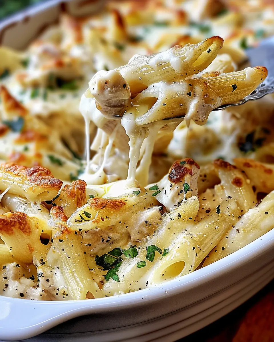 This Chicken Alfredo Baked Ziti combines creamy Alfredo sauce with tender ziti pasta and succulent chicken for a comforting dish everyone will love.