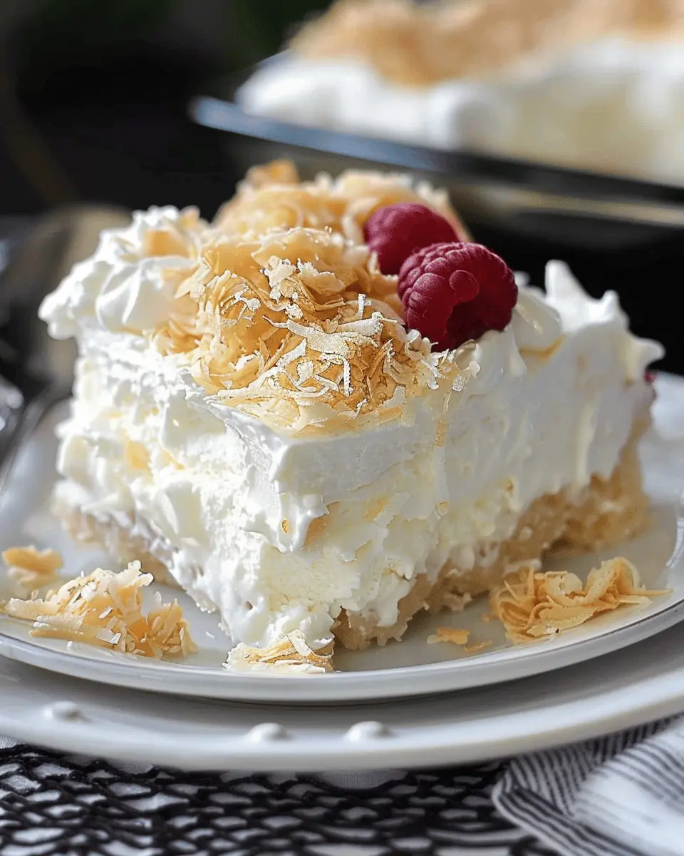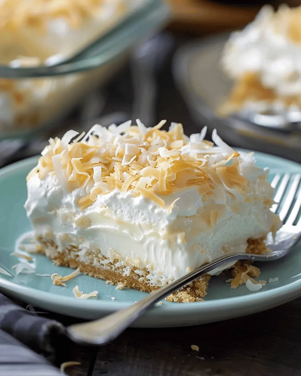 As you can see, preparing your Coconut Cream Lush isn’t just about following a recipe—it’s about enjoying the journey of creating something delicious. Once chilled, slice, serve, and watch as your friends and family fall in love with every creamy, coconut-infused bite! Whether for a casual gathering or a special occasion, this dessert is sure to impress. Happy baking!