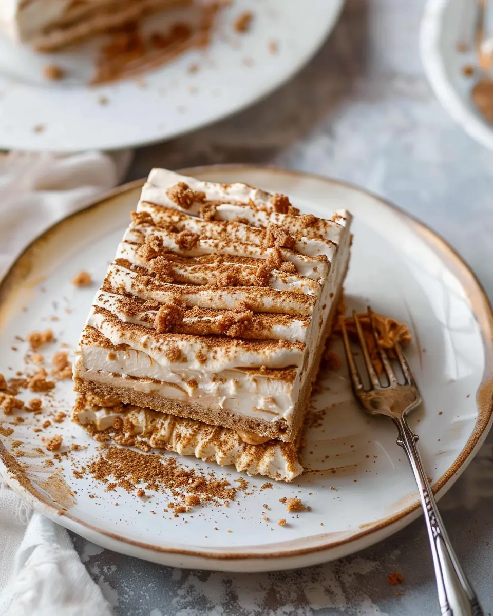Getting started with your cookie butter icebox cake is a breeze! You can whip up the ingredients and layer them together in just about 20 minutes. It’s the perfect way to spend a short break or a relaxing evening.