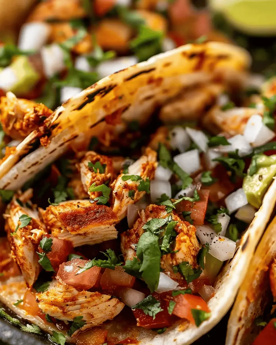 Once cooked, shred or chop the chicken into bite-sized pieces. You’ll be amazed at how juicy and flavorful this chicken is, making it the perfect filling for your tacos.