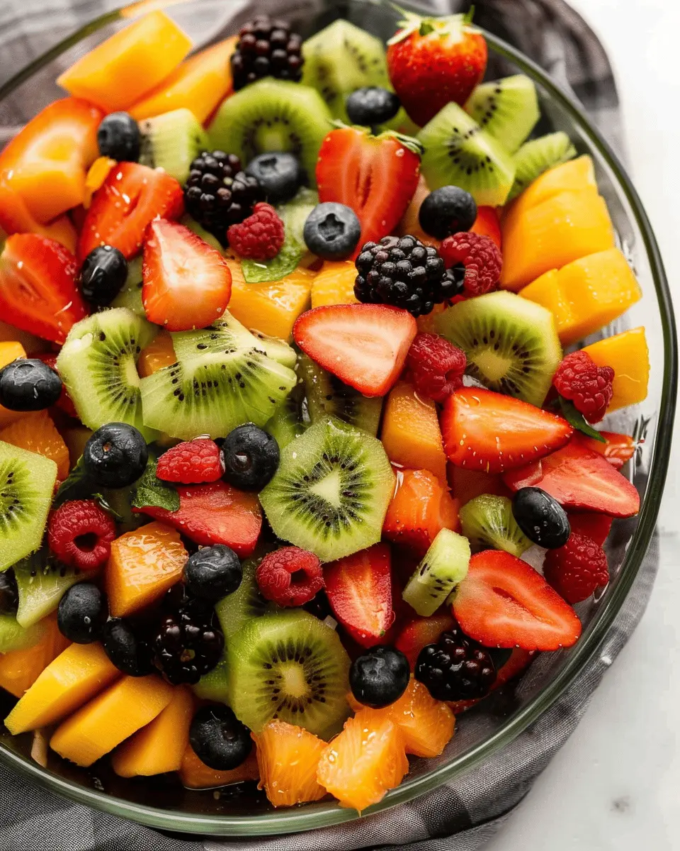 Generally, a fruit salad is best enjoyed fresh, but if you need to store it, you can keep it in the fridge for about 1-2 days. Just remember to give the salad a gentle toss before serving again; the dressing can settle at the bottom. If you’re making it ahead of time, slice and store fruits that brown quickly, like bananas and apples, separately and assemble them right before serving for the best taste.