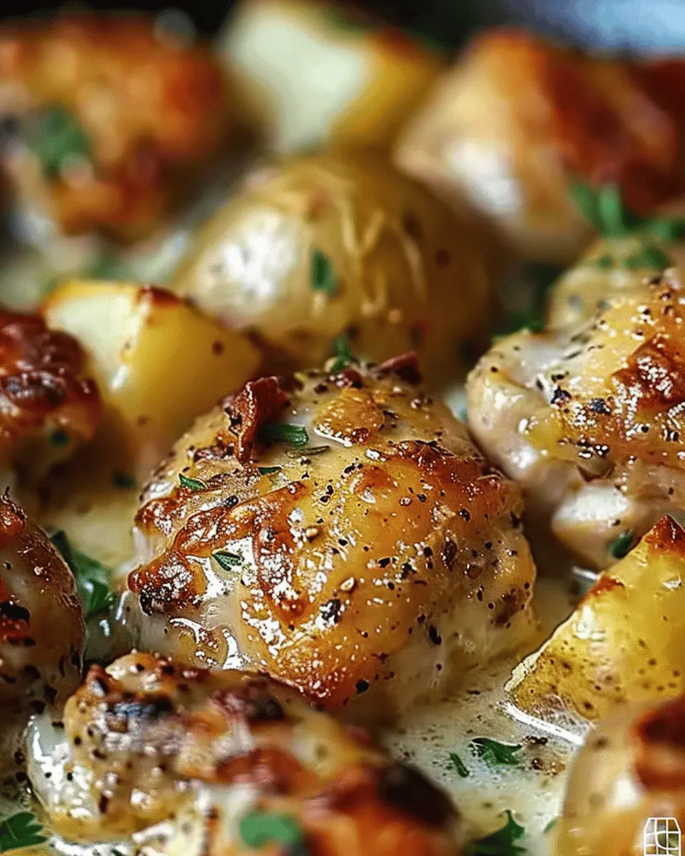 PrintGarlic Parmesan Crockpot Chicken and Potatoes: Easy Comfort Food Delight