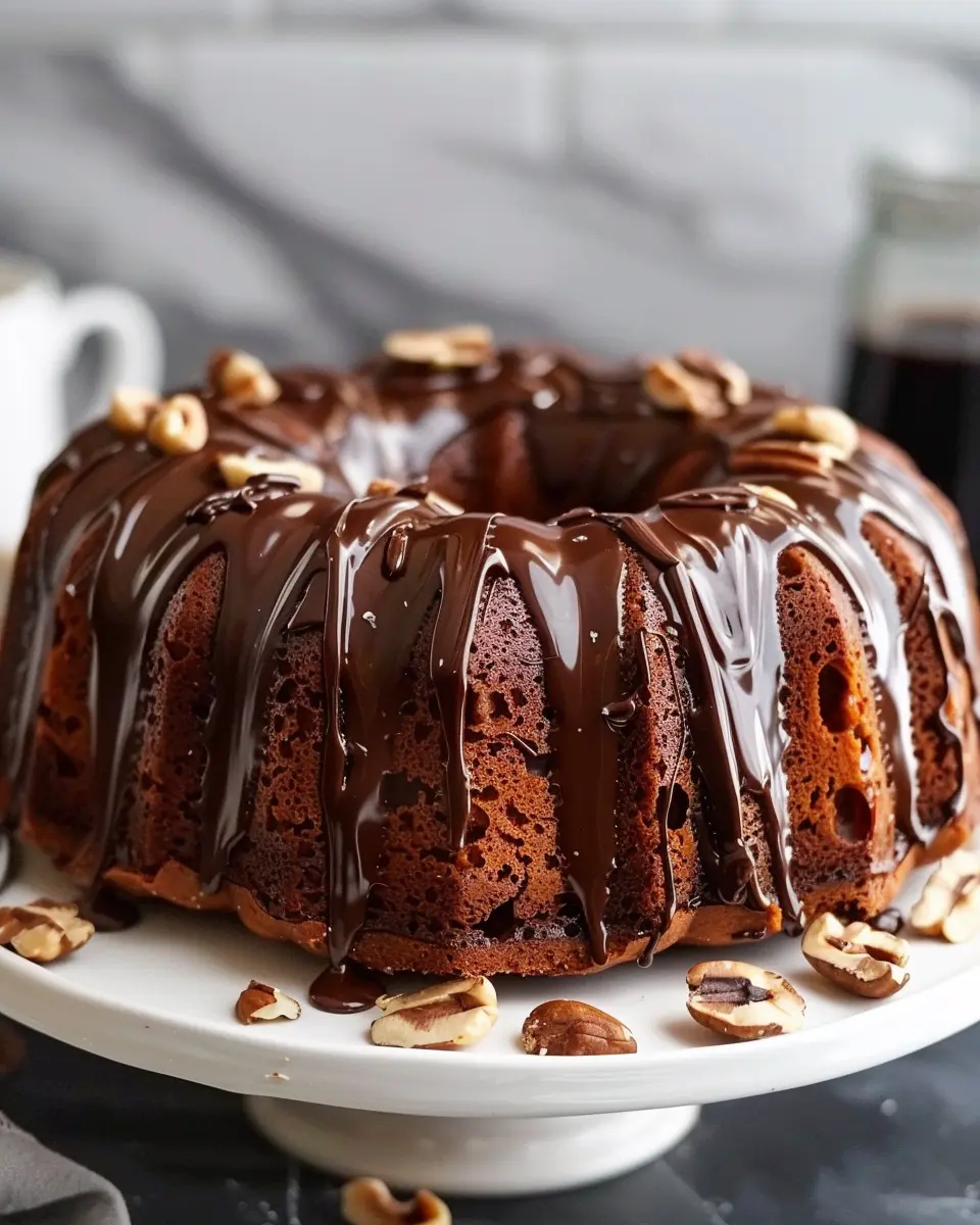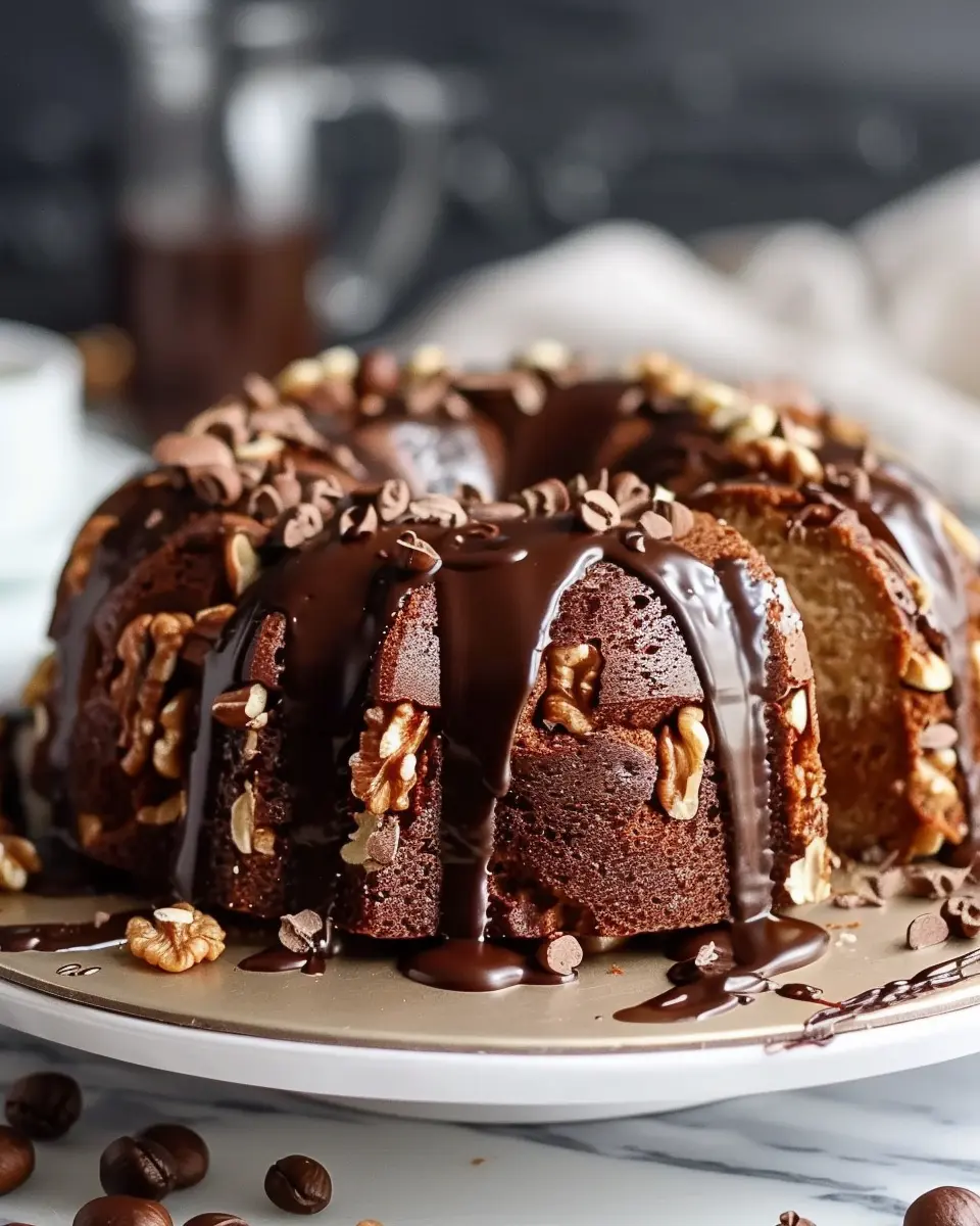 PrintHazelnut Bundt Cake with Espresso & Chocolate Glaze: Indulgent Delight
