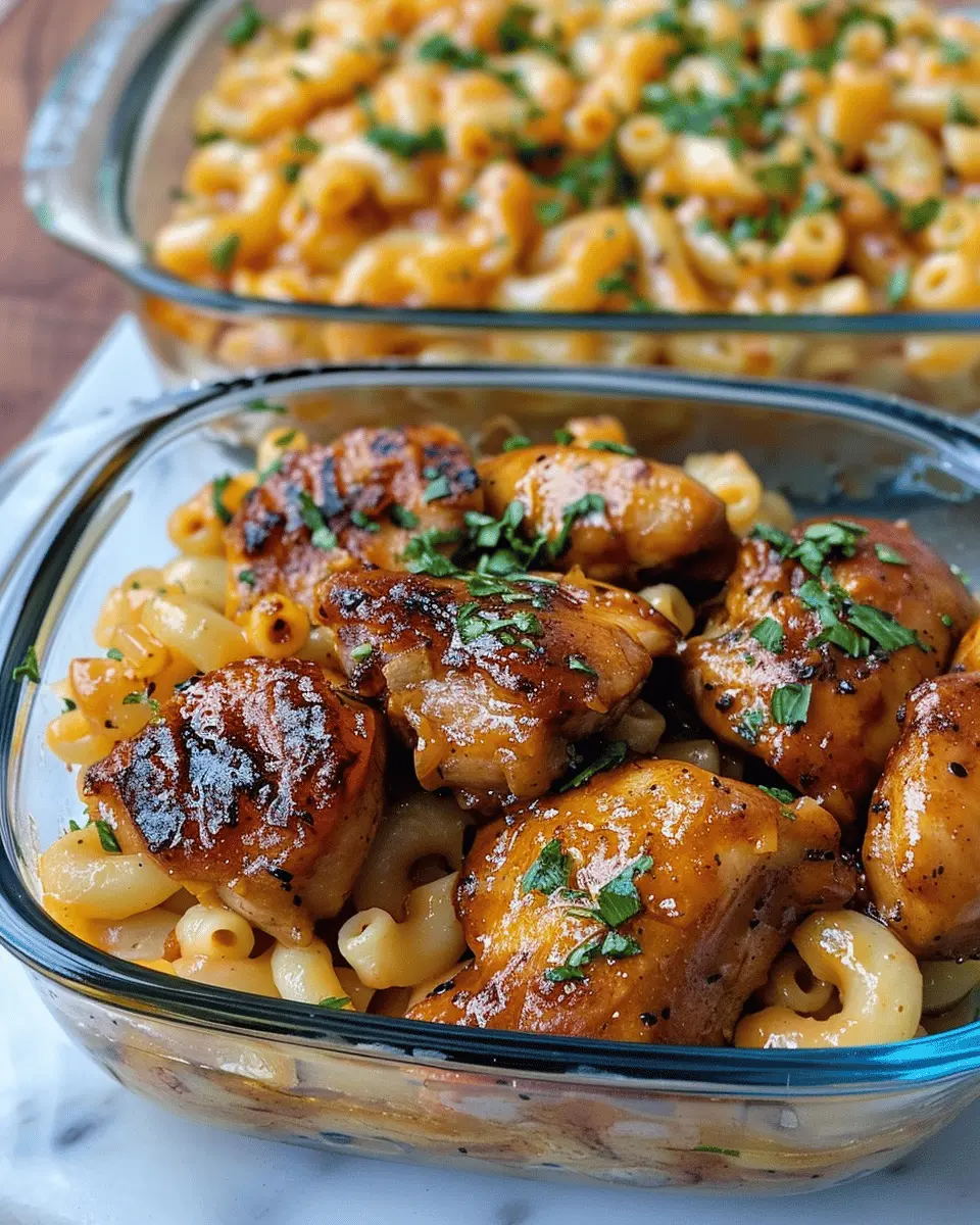Enjoy a deliciously satisfying meal with this high-protein honey garlic butter chicken paired with creamy mac & cheese, perfect for family dinners or meal prep!