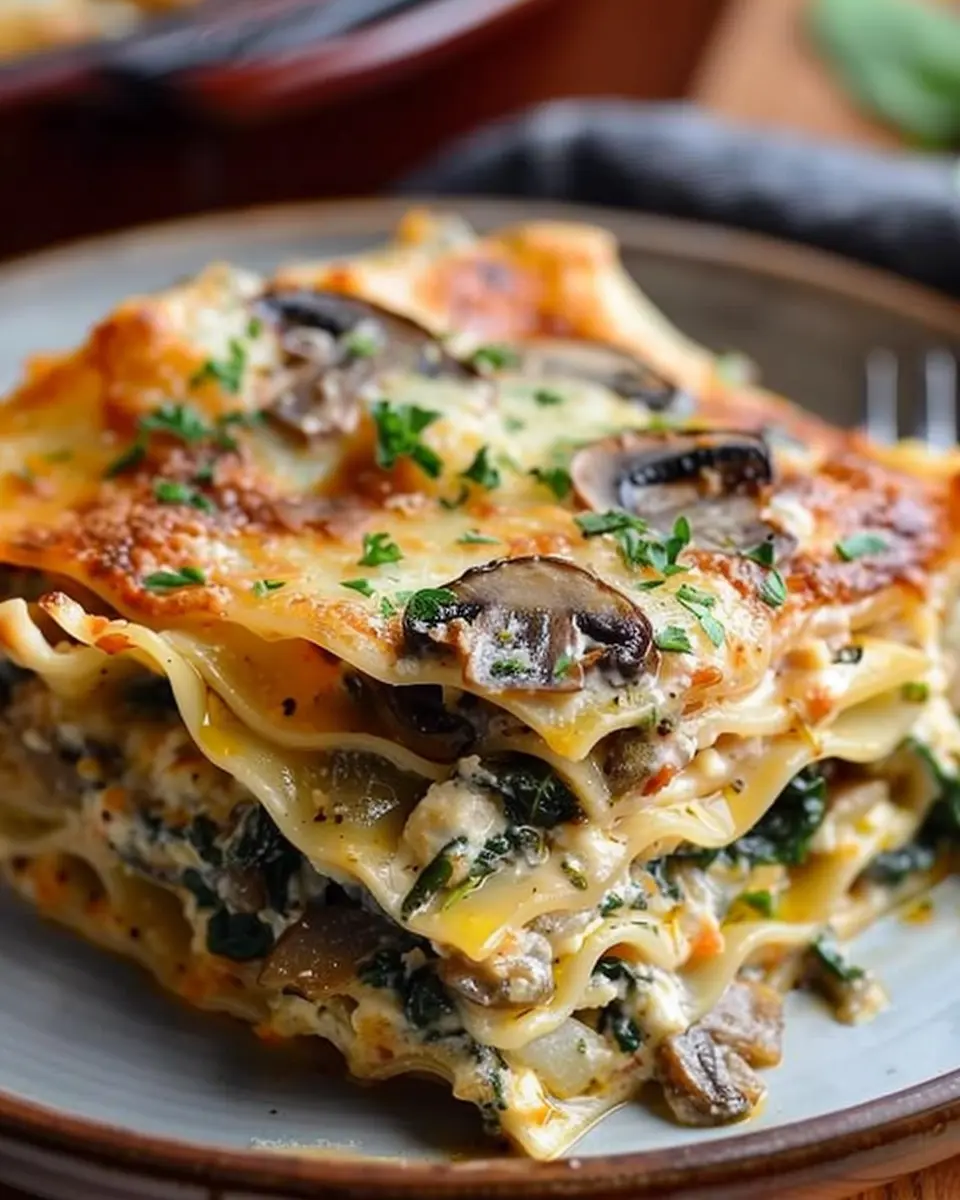 A comforting and easy-to-make Mushroom and Spinach Lasagna perfect for family meals.