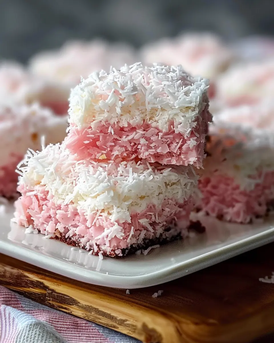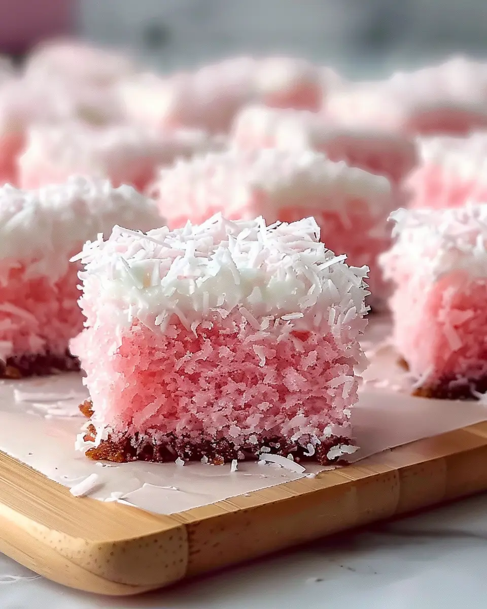 Imagine biting into a moist cake bar, surrounded by a heavenly coating of creamy frosting and sprinkled with shredded coconut. The pink hue not only makes these bars visually appealing but also adds a sense of fun to your baking endeavors. These bars are particularly great for parties where you want to impress your guests without spending hours in the kitchen.