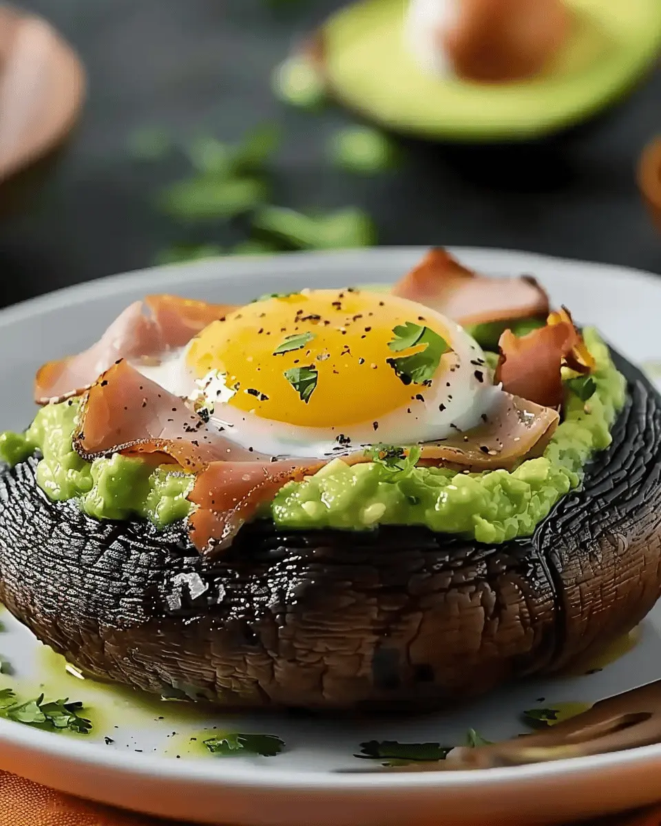 Absolutely! You can prepare the Portobello Stuffed with Chicken Ham, Egg, and Guacamole filling ahead of time. Simply sauté the chicken ham with your choice of spices, mix in the guacamole, and store it in the fridge for up to 24 hours. When you’re ready to serve, stuff your portobello caps, top with poached eggs, and bake until everything is warm and delicious. Just remember to poach the eggs right before serving for that perfect runny yolk!