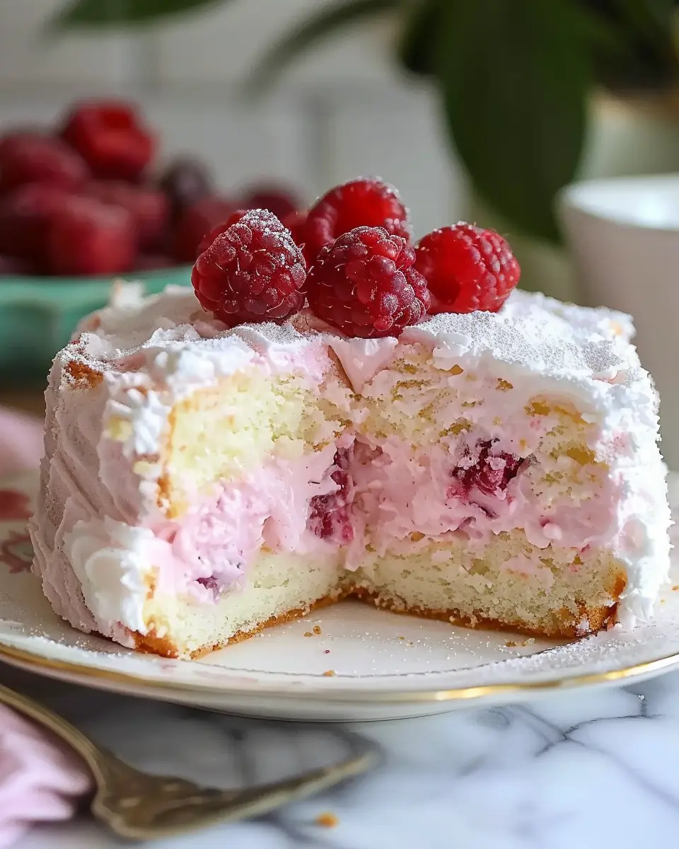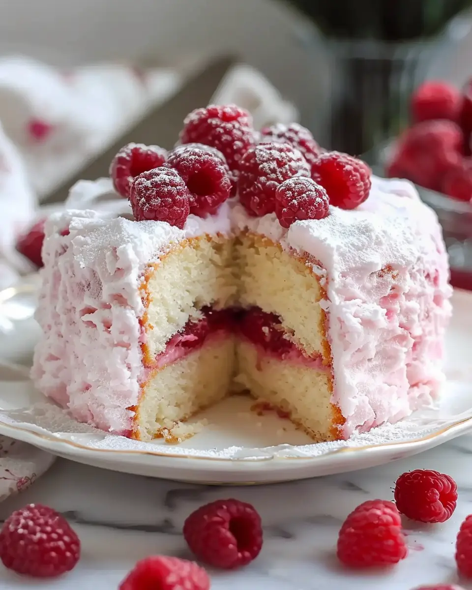 A light and fluffy dessert that combines the sweetness of raspberries with the airy texture of angel food cake.