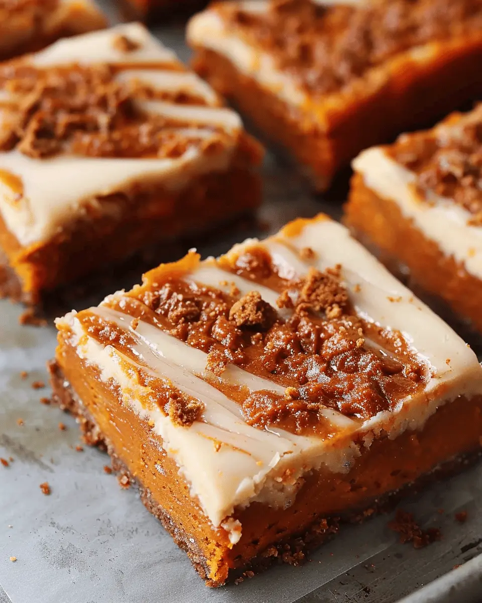 Transform your pumpkin bars into a show-stopping dessert by topping them with a swirl of homemade cream cheese frosting or a dusting of powdered sugar. You can also serve them in individual portions, garnished with a sprinkle of chopped nuts for extra crunch. Consider pairing these bars with a festive platter of seasonal fruit, such as sliced pears and pomegranates, to balance the rich flavors.