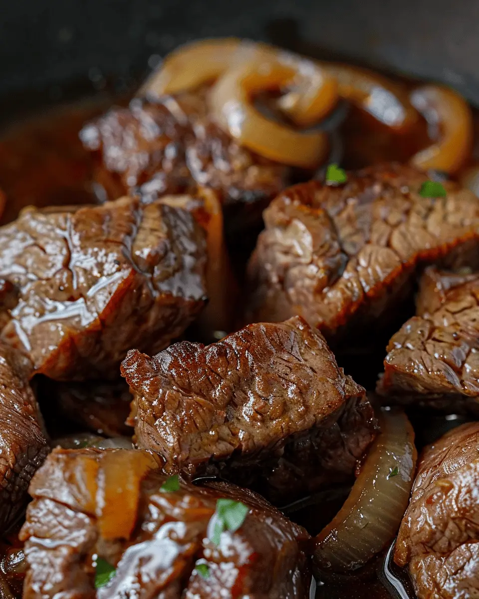 In your slow cooker, the way you layer your ingredients can influence the final taste and texture. Begin by placing half of your sliced onions at the bottom. Then, add the cubed steaks in a single layer on top of the onions. This method helps to infuse the flavor into the meat as it cooks.