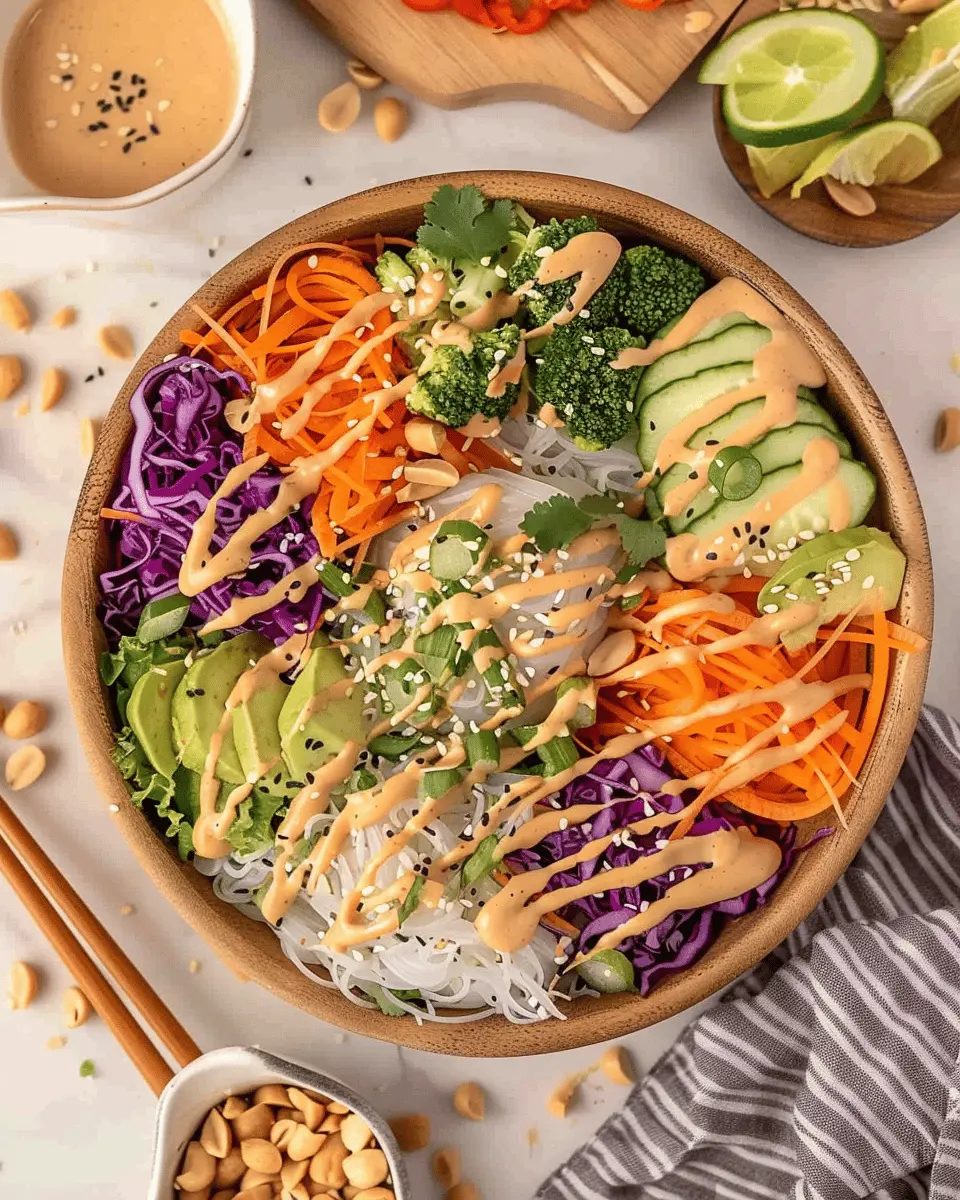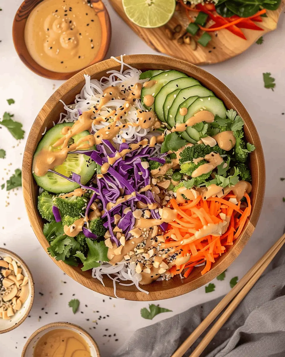 Dressing Variations: While the peanut sauce is a must for flavor, don’t hesitate to experiment with a cilantro-lime dressing for a refreshing alternative. Just mix lime juice, cilantro, a splash of honey, and olive oil for a light and tangy complement.