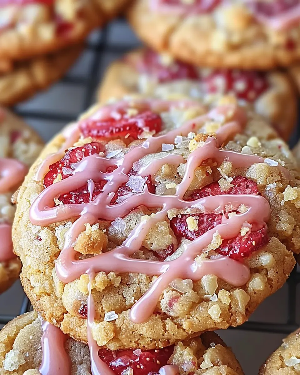 Indulge in the delightful taste of Strawberry Crunch Cookies, a perfect treat for anyone who loves strawberry flavors.
