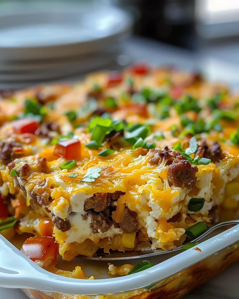 In a large bowl, crack about a dozen eggs—yes, you heard that right! This is a breakfast dish after all. Whisk them together until fully mixed, then add:
